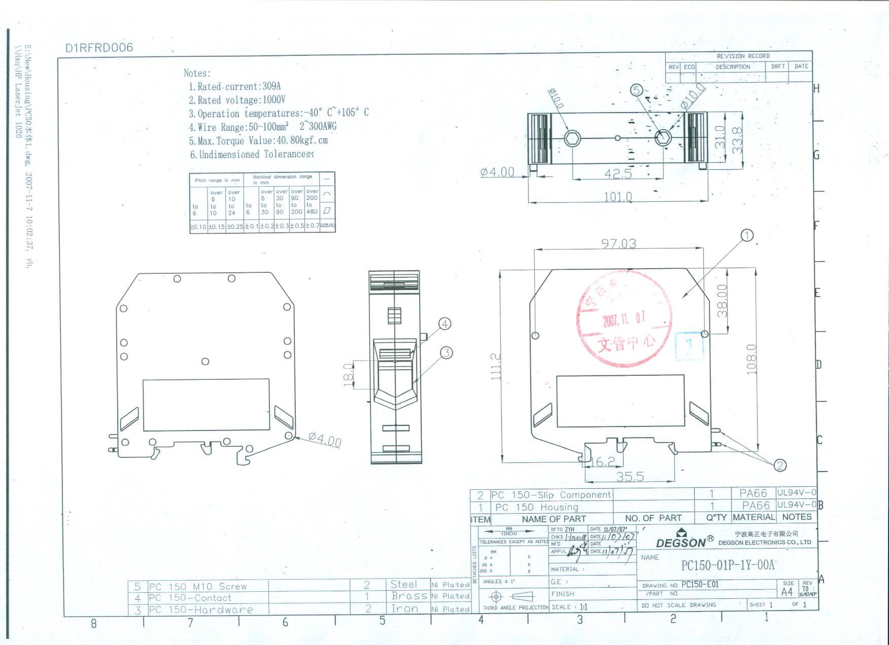 PC150-01P-11-00Z(H), Клемма на дин-рейку, 150 кв.мм,...