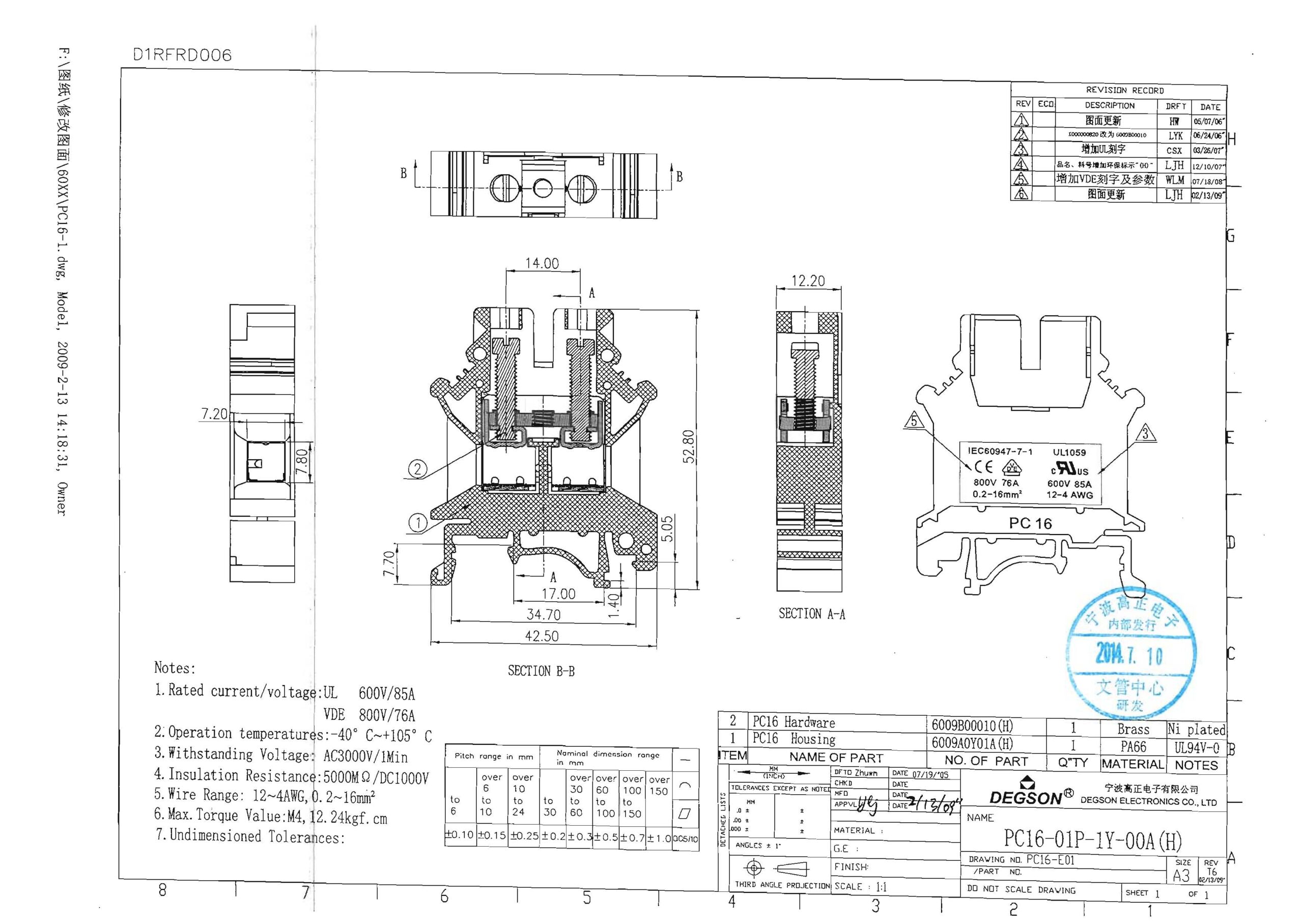 PC16-01P-11-00Z(H), Клемма на дин-рейку, 16 кв.мм, 1...
