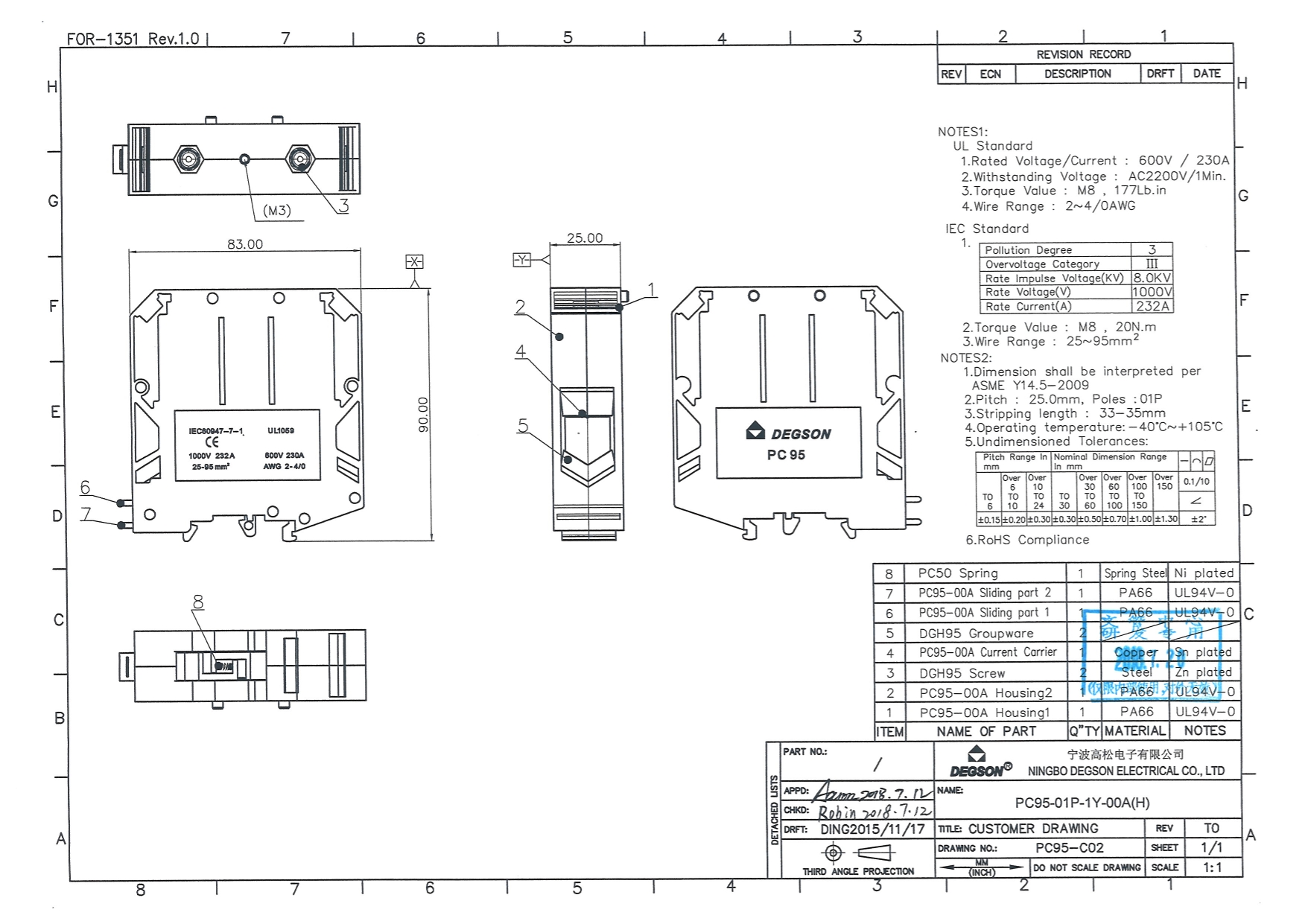 PC95-01P-11-00Z(H), Клемма на дин-рейку, 95 кв.мм, 1...