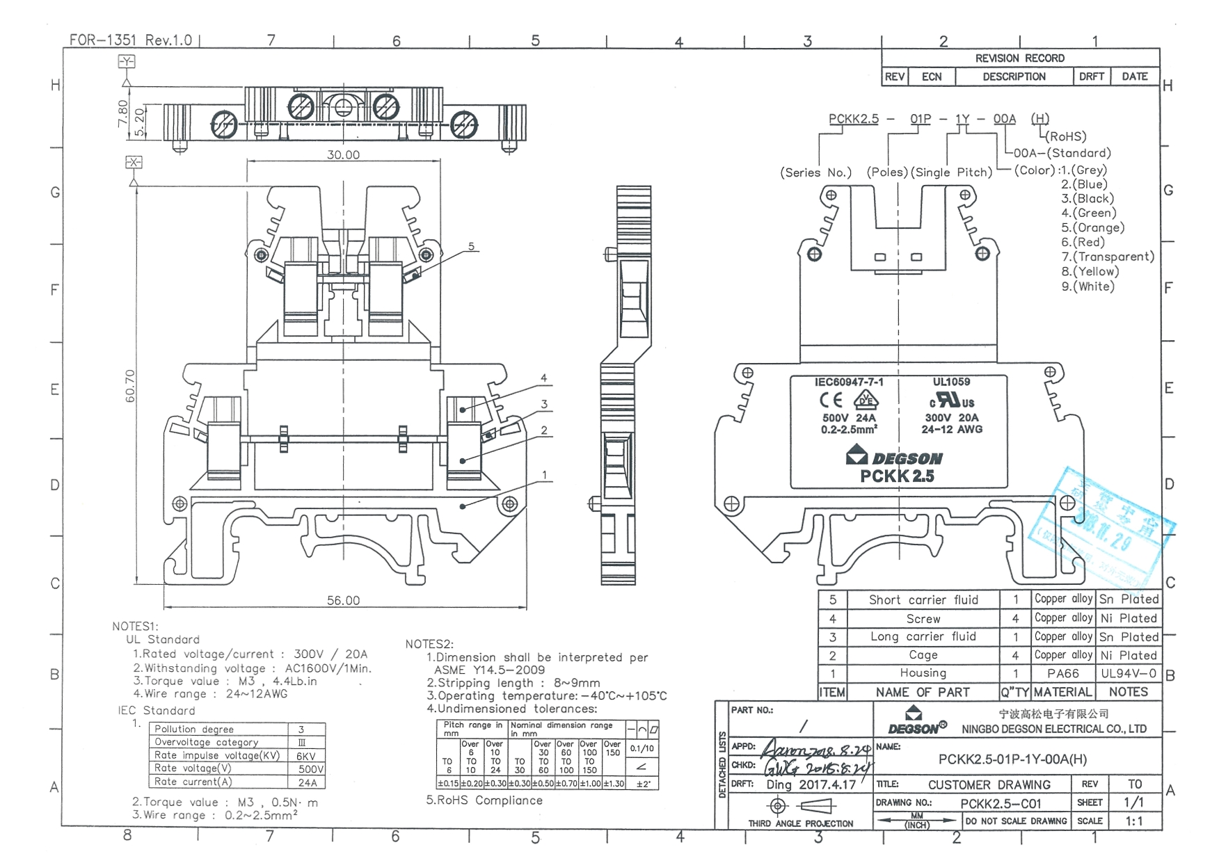 PCKK2.5-01P-12-00Z(H), Клемма на дин-рейку, 2.5...