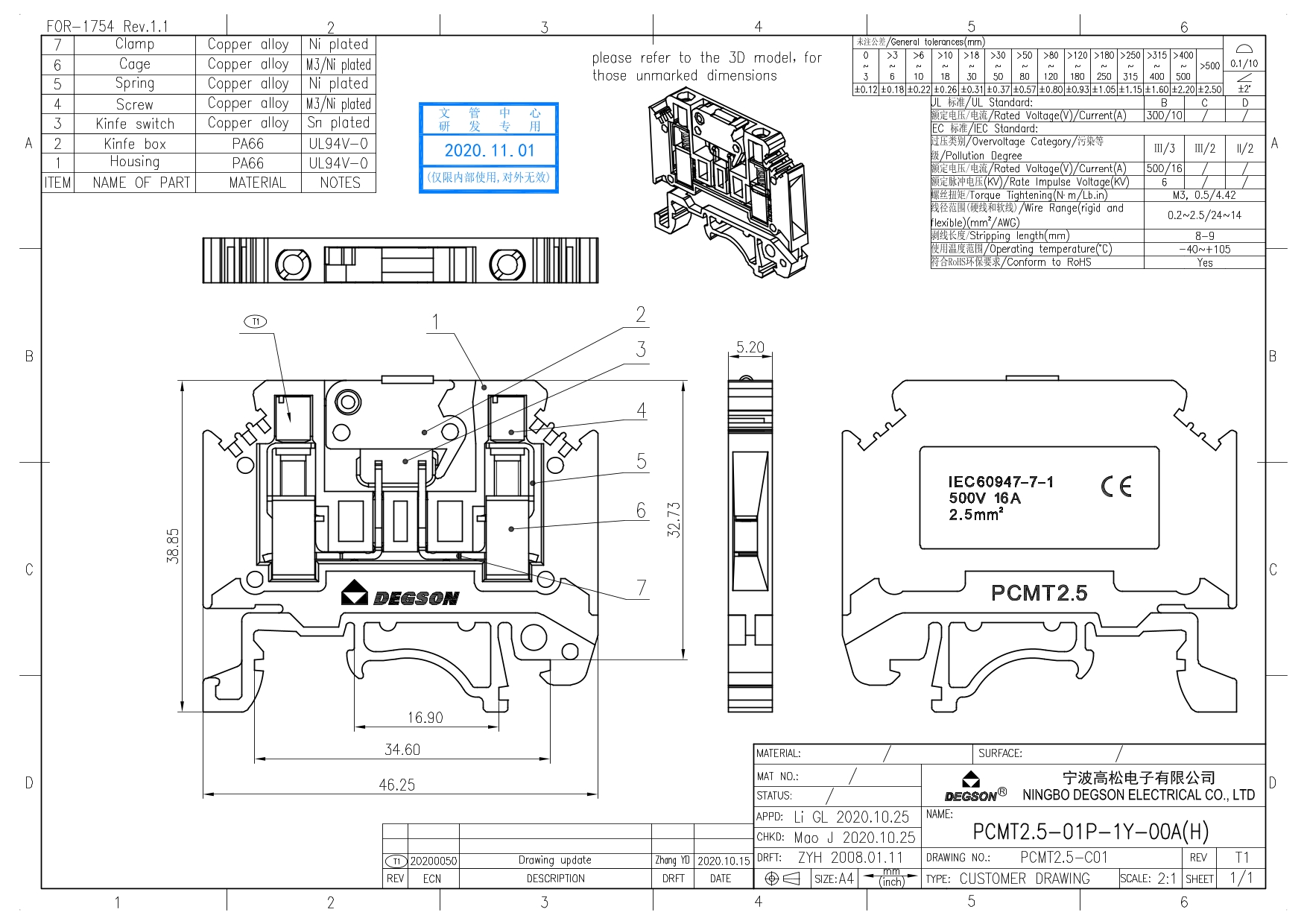 PCMT2.5-01P-11-00Z(H), Клемма на дин-рейку, с...