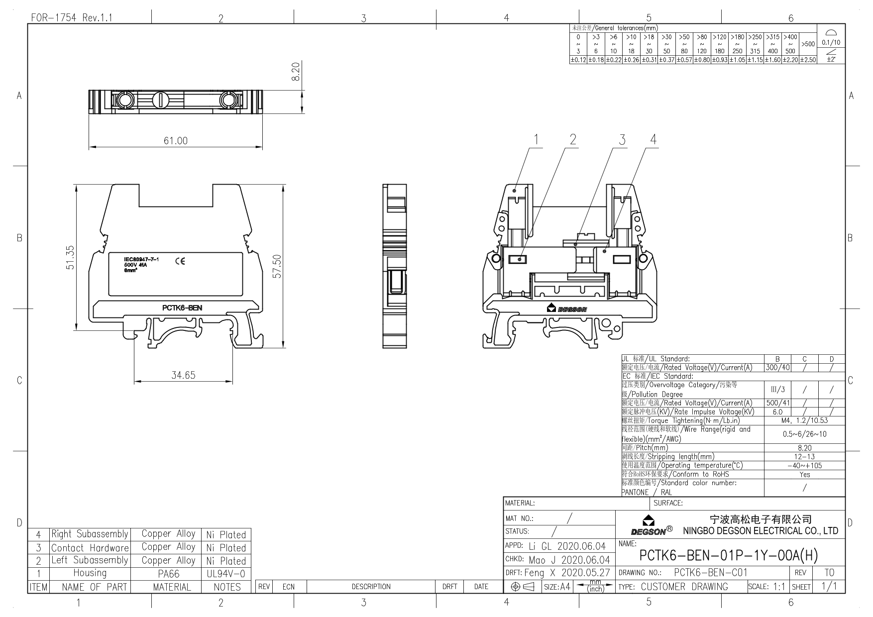 PCTK6-BEN-01P-11-00Z(H), Клемма на дин-рейку,...