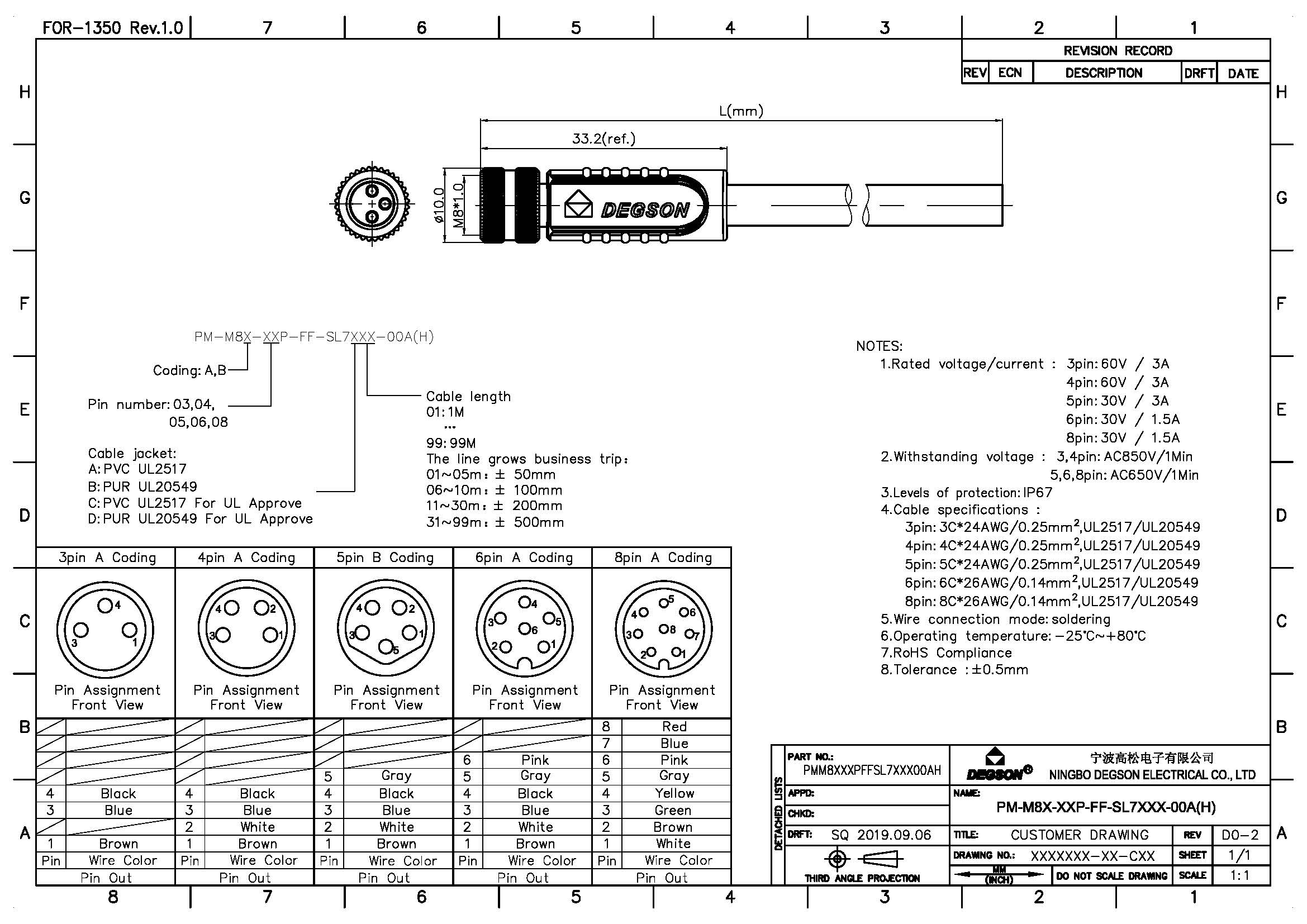 PM-M8A-04P-FF-SL7C10-00Z(H), Гнездо M8, 4 пин,...