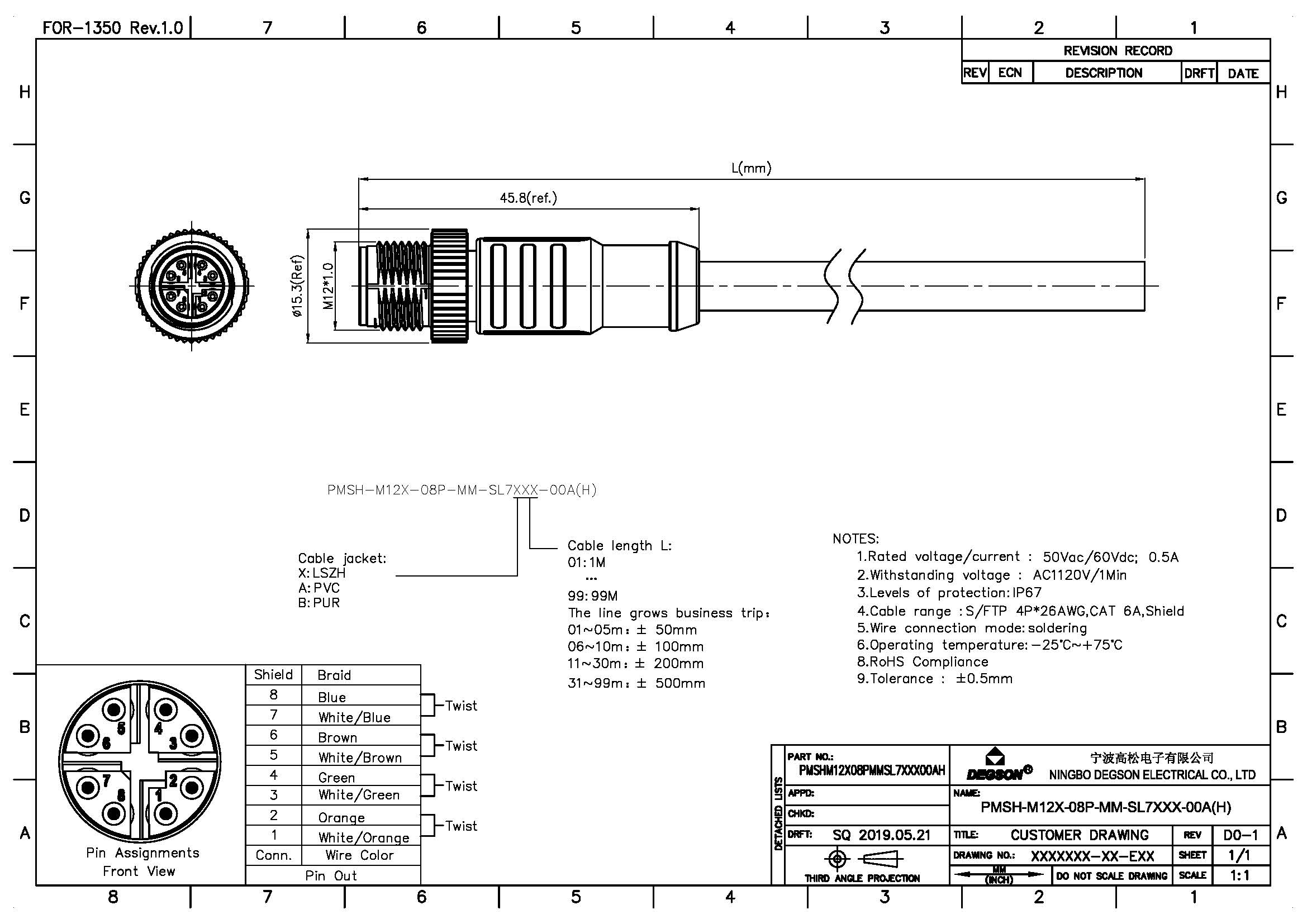 PMSH-M12X-08P-MM-SL7X01-00Z(H), Кабельная сборка,...