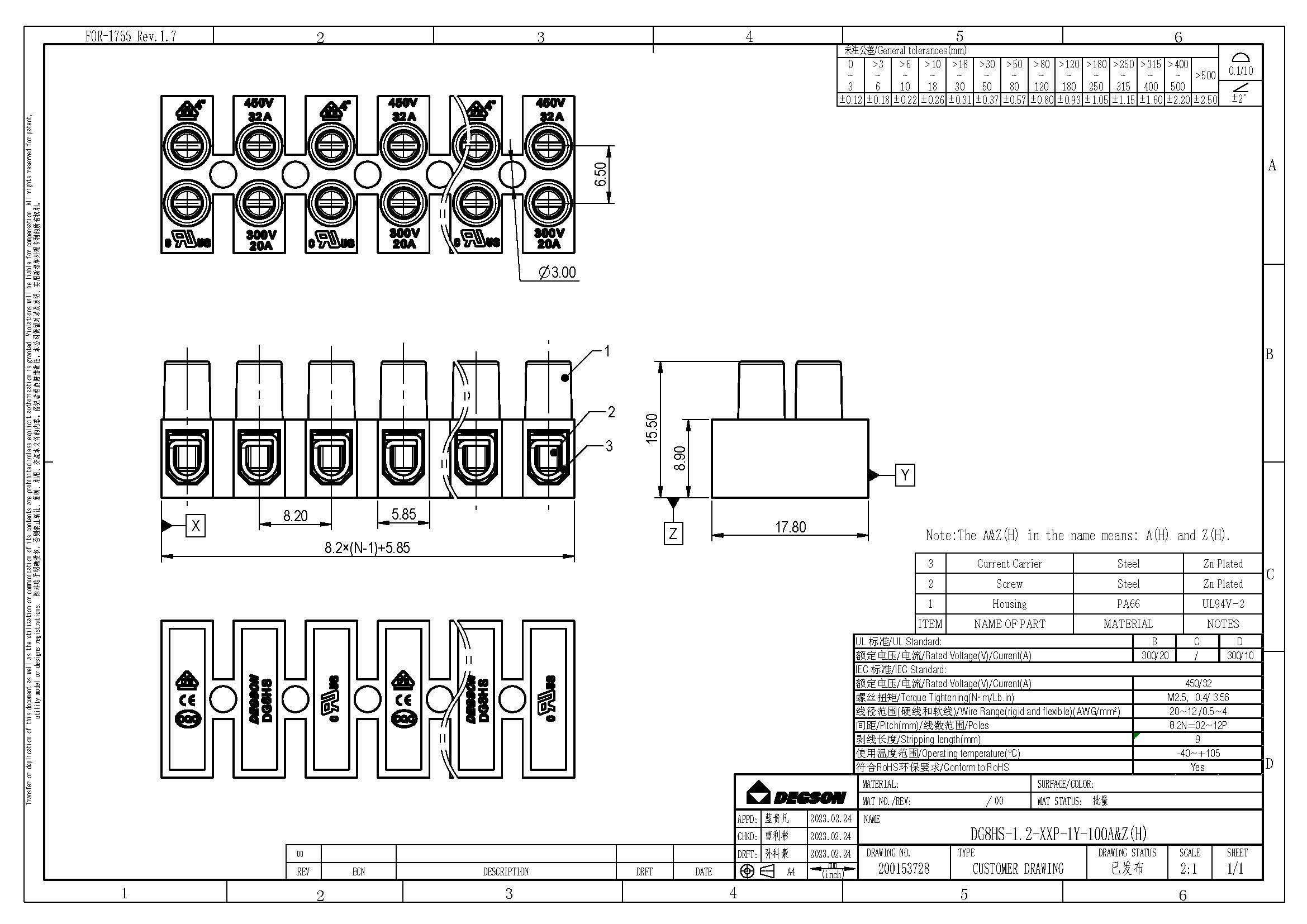 DG8HS-1.2-12P-17-100Z(H), Клеммная колодка, 12...