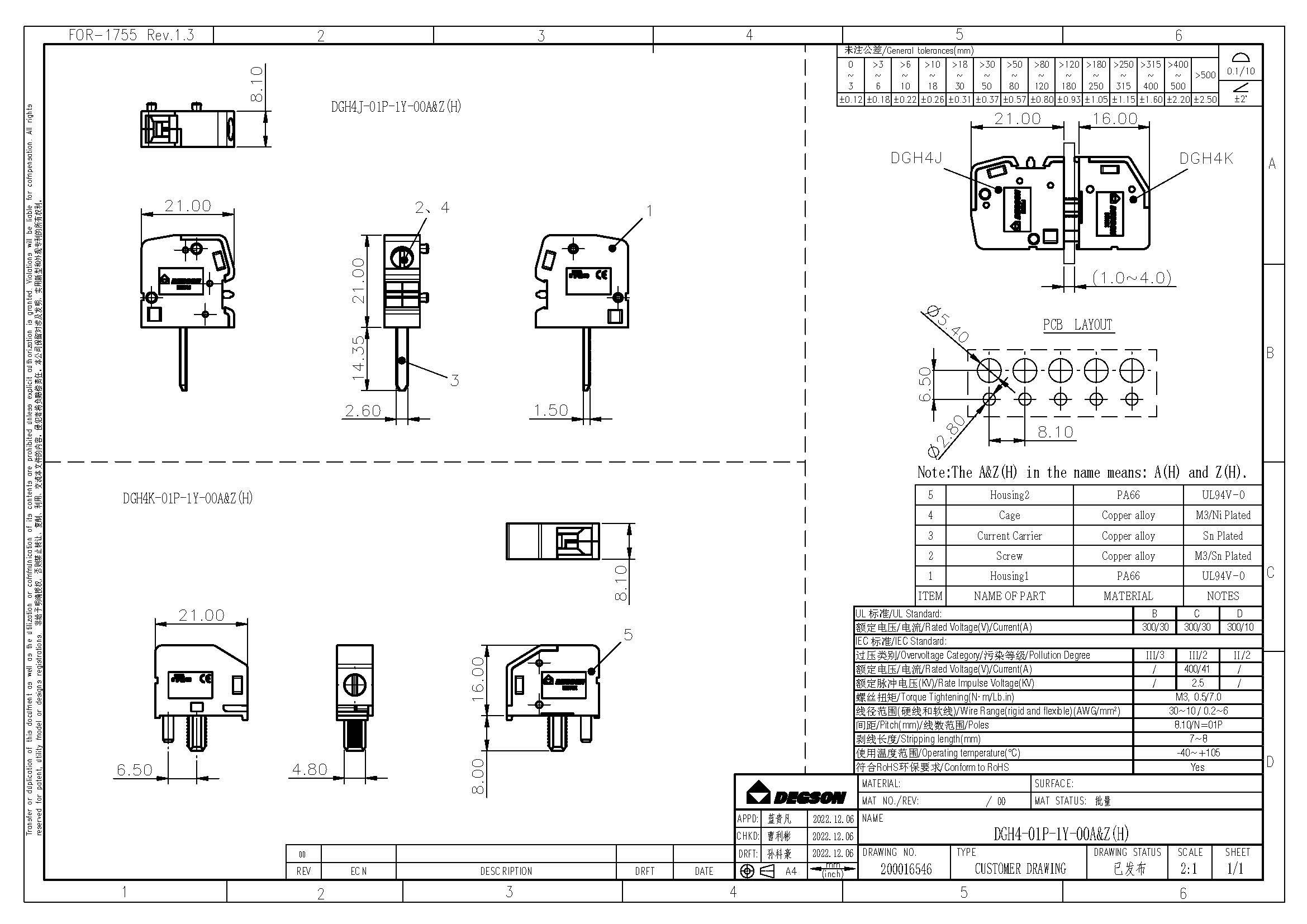 DGH4-01P-11-00Z(H), Проходной клеммный блок, винт.,...