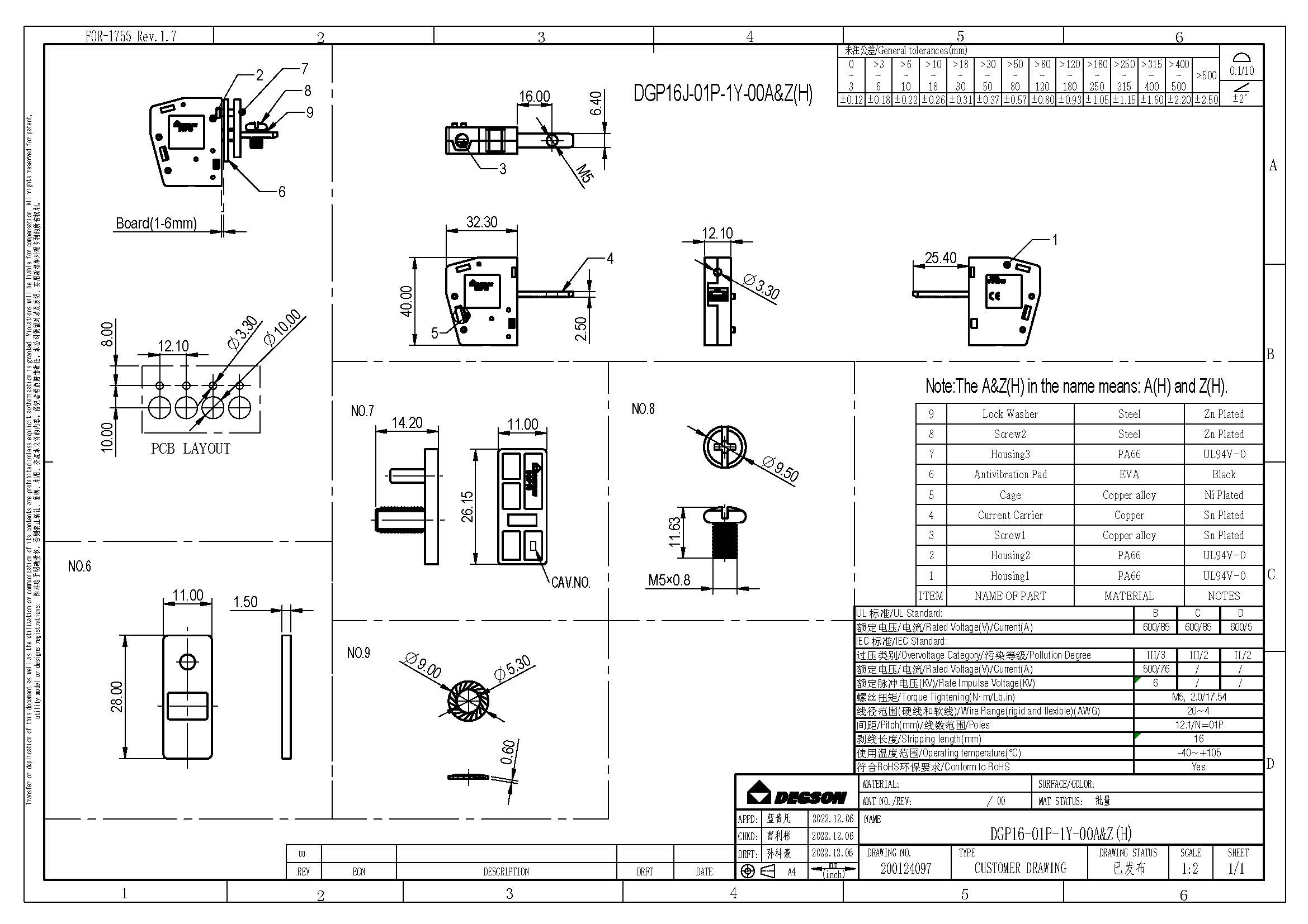 DGP16-01P-11-00Z(H), Проходной клеммный блок, винт.,...