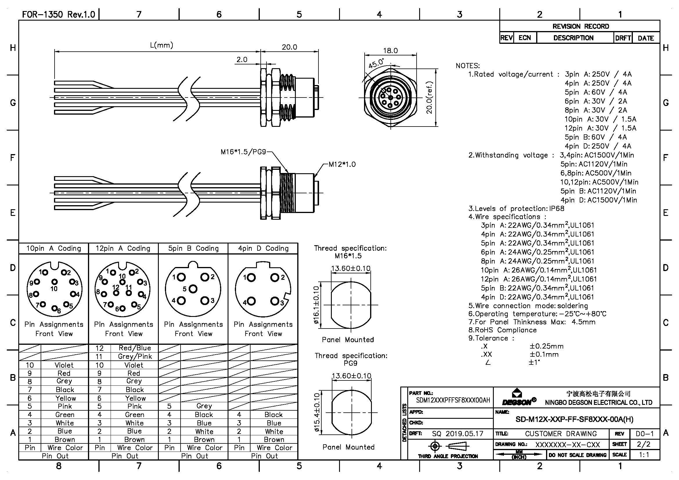 SD-M12A-05P-FF-SF8A50-00Z(H), Гнездо для монтажа на...