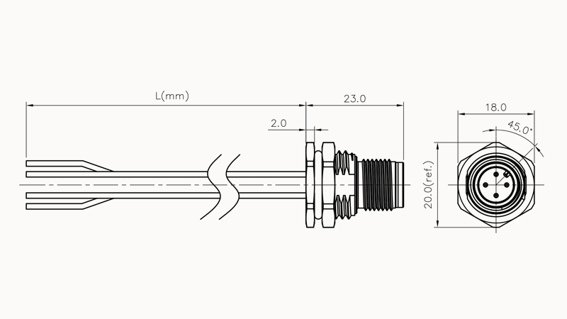 Гнездо для монтажа на панель, M12, 6 пин, монт сзади, с провод. 0,5 м.