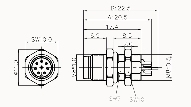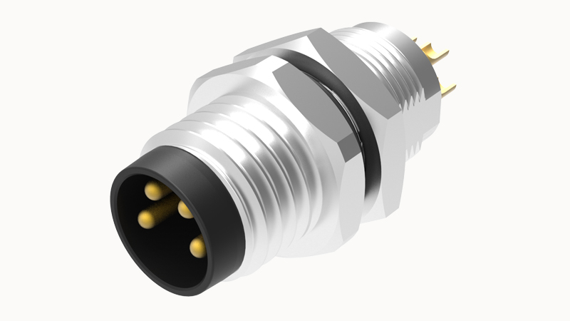 Гнездо для монт на панель, M8, 4 пин, перед крепл, неэкран, пайка без пров