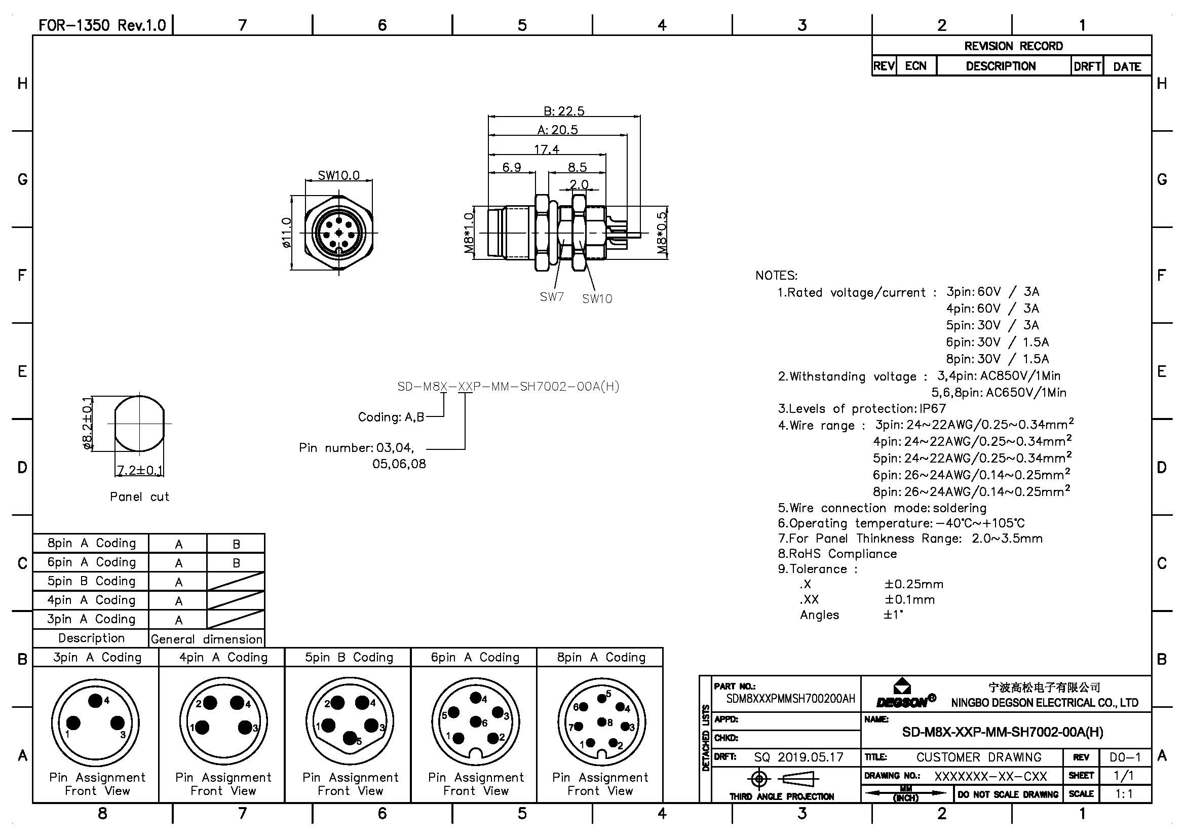 SD-M8A-04P-MM-SH7002-00Z(H), Гнездо для монт на...