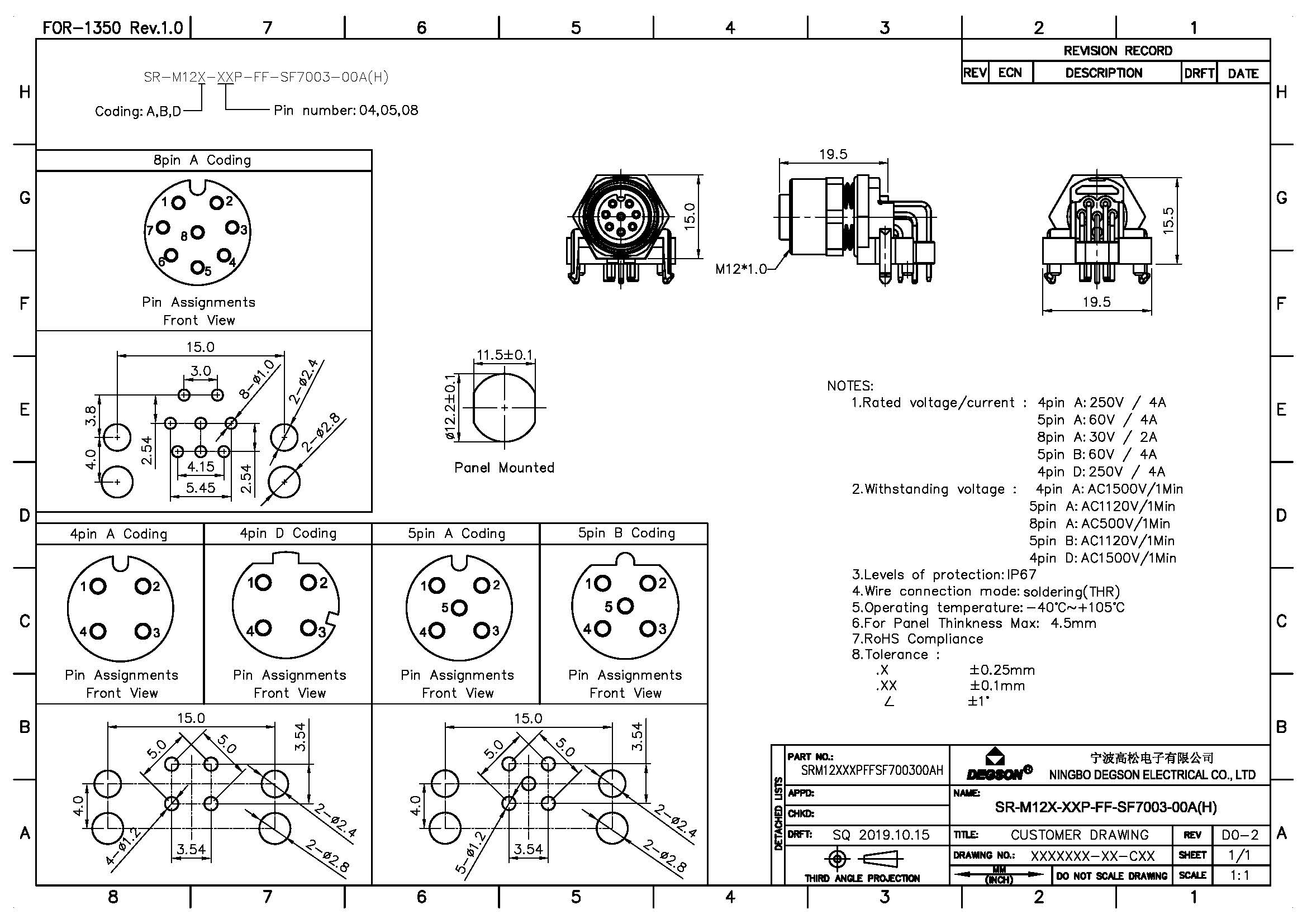 SR-M12A-05P-FF-SF7003-00Z(H), Гнездо для монтажа на...