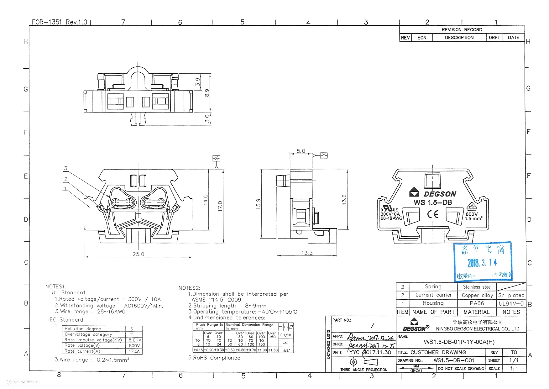 WS1.5-DB-01P-11-00Z(H), Клемма на дин-рейку, 1.5...