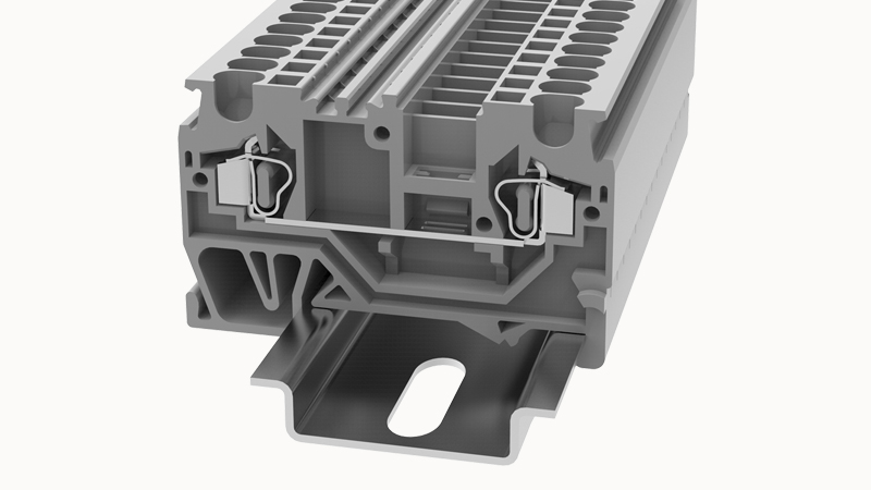 Клемма на дин-рейку, 2.5 кв.мм, 1 ур., 2 конт, пружинная, серая