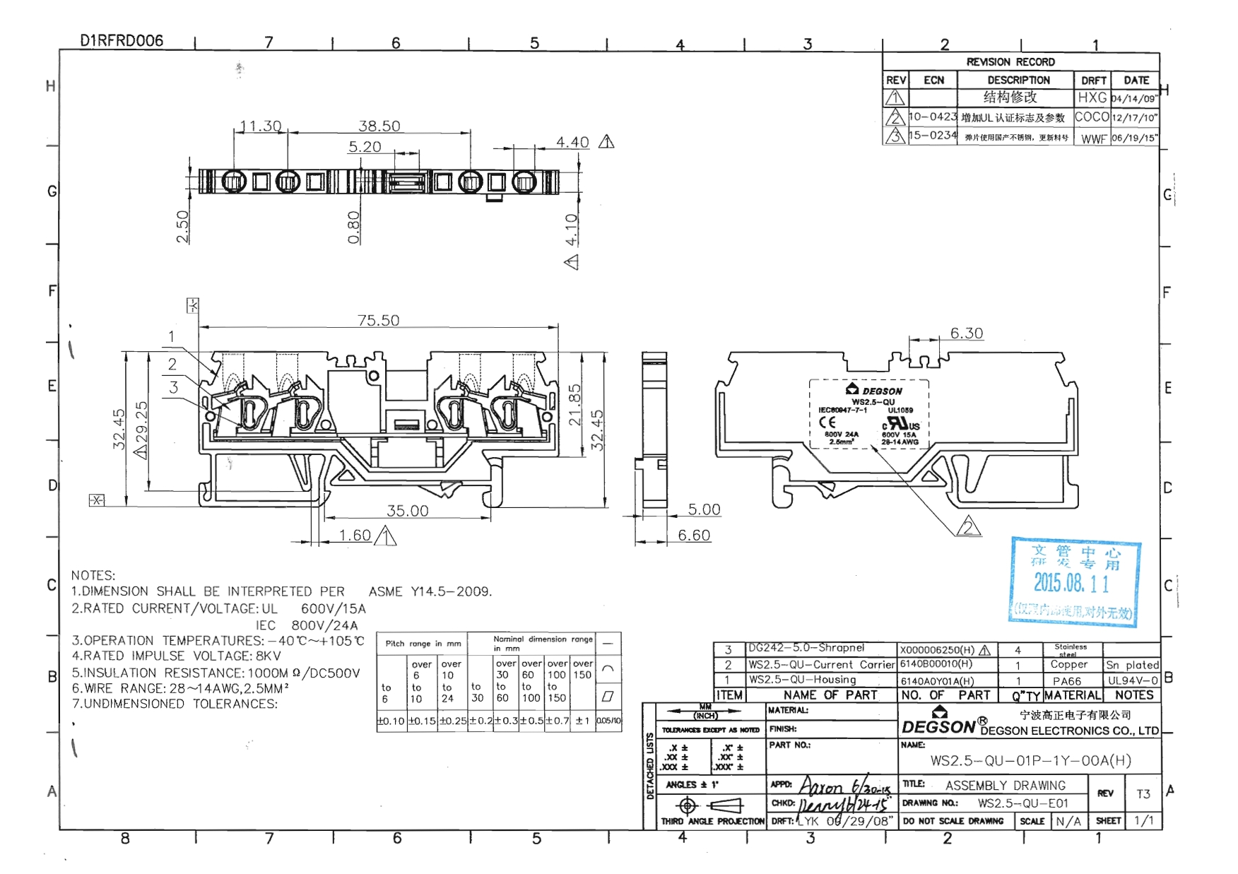 WS2.5-QU-01P-15-00Z(H), Клемма на дин-рейку, 2.5...