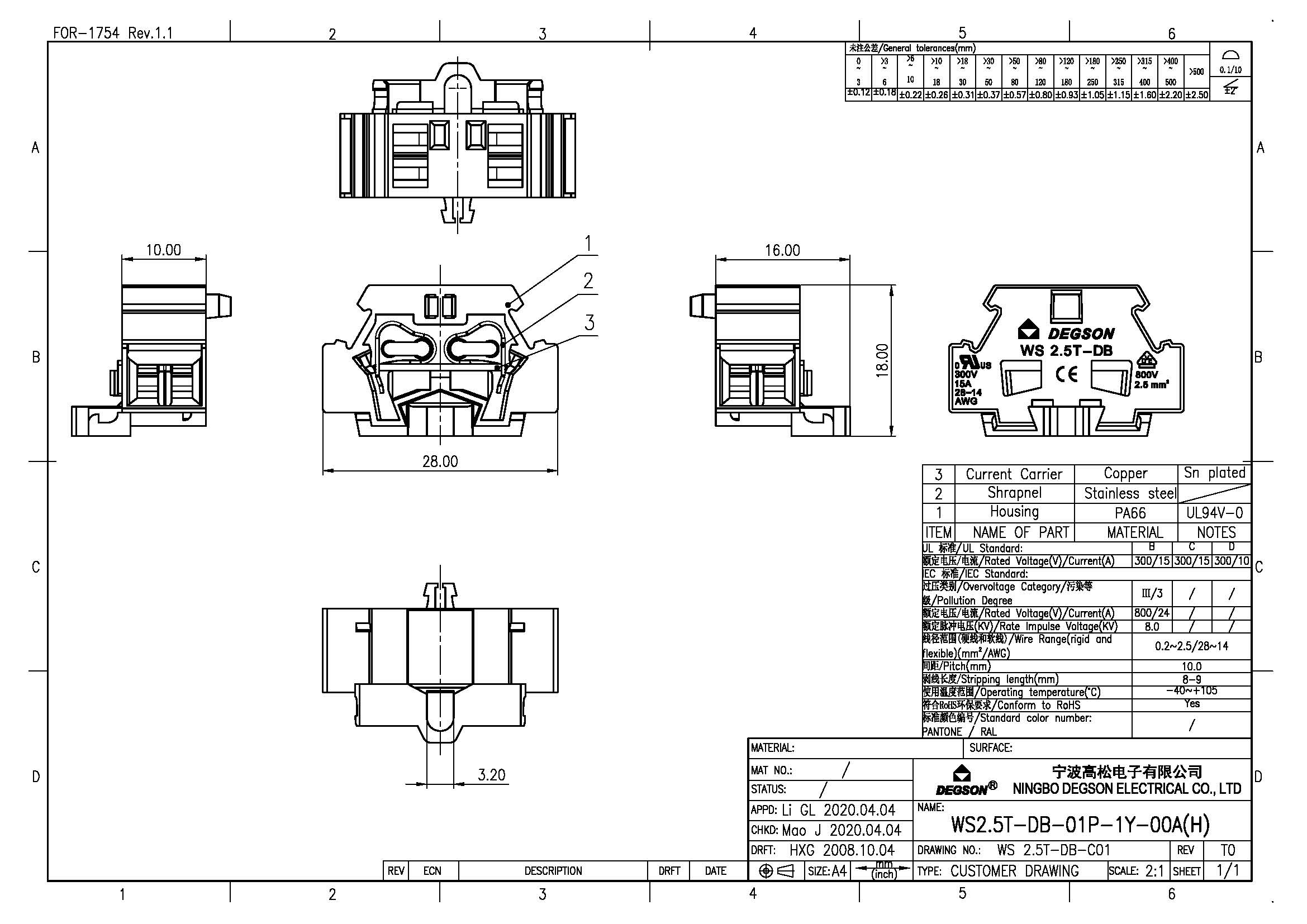 WS2.5T-DB-01P-11-00Z(H), Клеммы на дин-рейку, 2.5...
