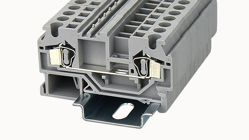 Клемма на дин-рейку, 4 кв.мм, 1 ур., 2 конт, пружинная, серая