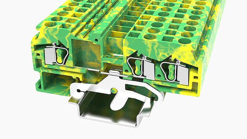 Клемма на дин-рейку, 4 кв.мм, 1 ур., 3 конт, пружинная, земля
