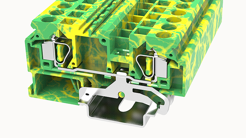 Клемма на дин-рейку, 6 кв.мм, 1 ур., 2 конт, пружинная, земля
