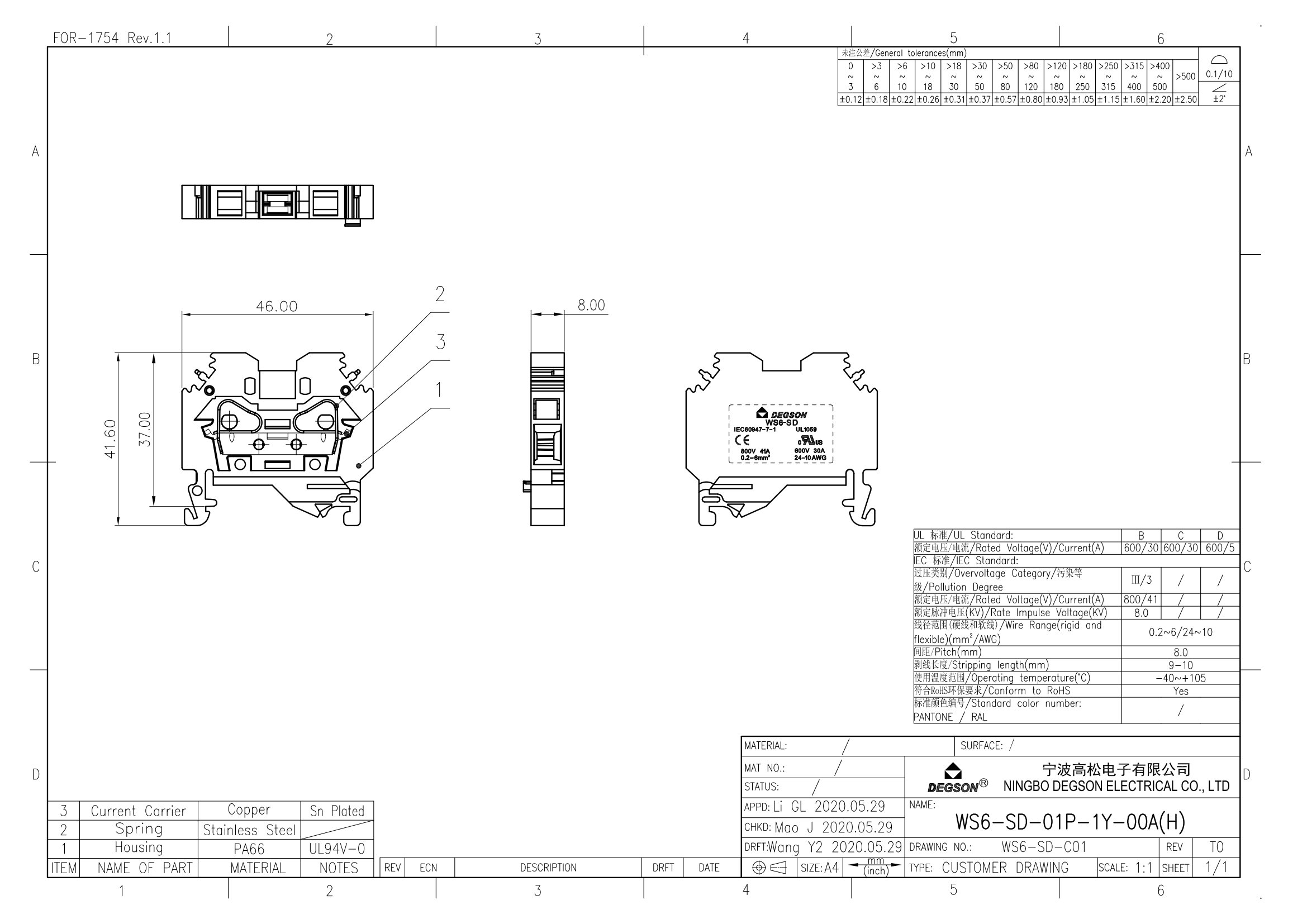 | Тип клеммы | Клемма проходная |
