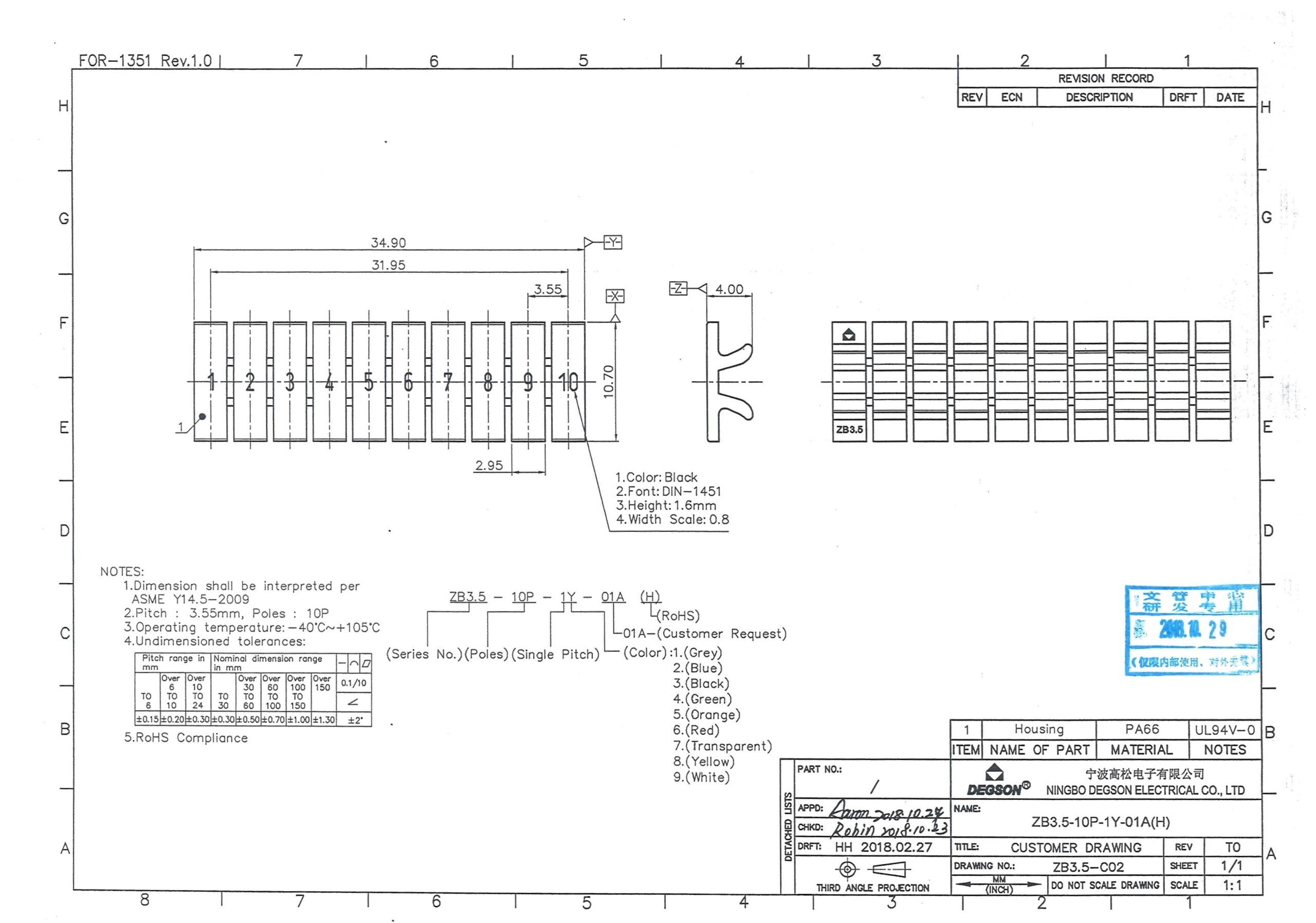 ZB3.5-10P-19-01Z(H), Маркировка, цифры гориз. 1-10,...