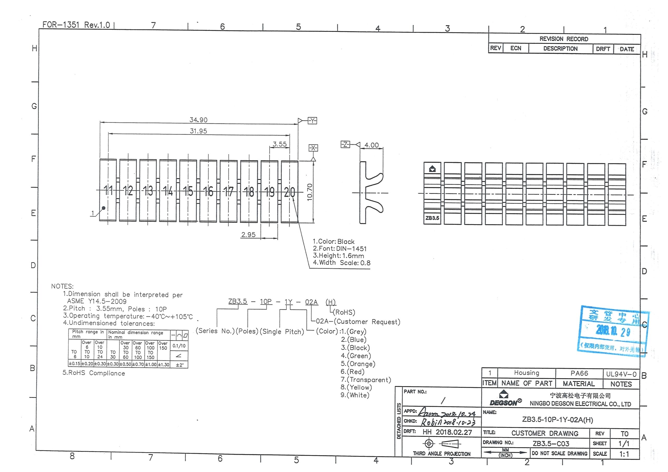 ZB3.5-10P-19-02Z(H), Маркировка, цифры гориз. 11-20,...