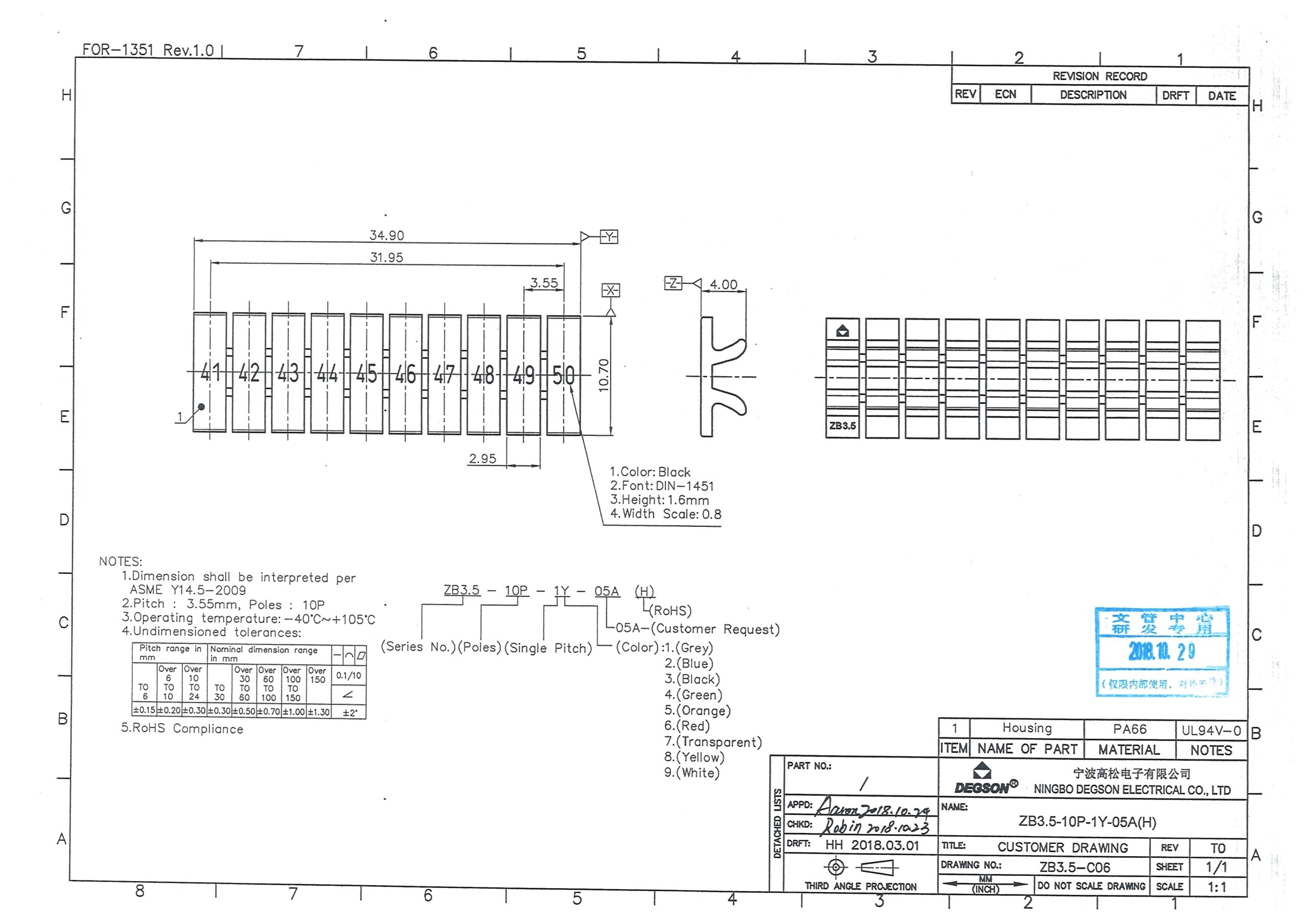 ZB3.5-10P-19-05Z(H), Маркировка, цифры гориз. 41-50,...