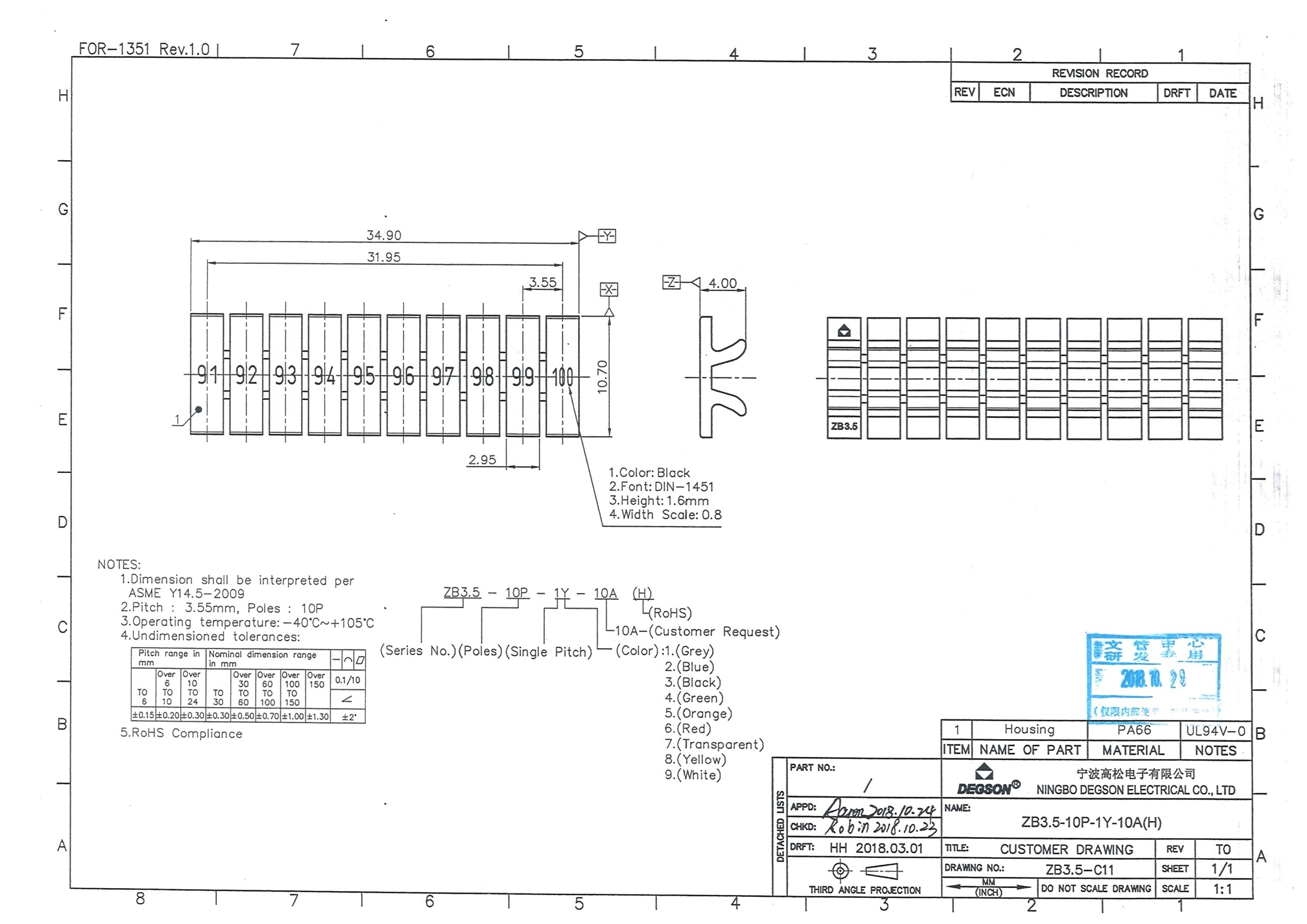ZB3.5-10P-19-10Z(H), Маркировка, цифры гориз. 91-100,...
