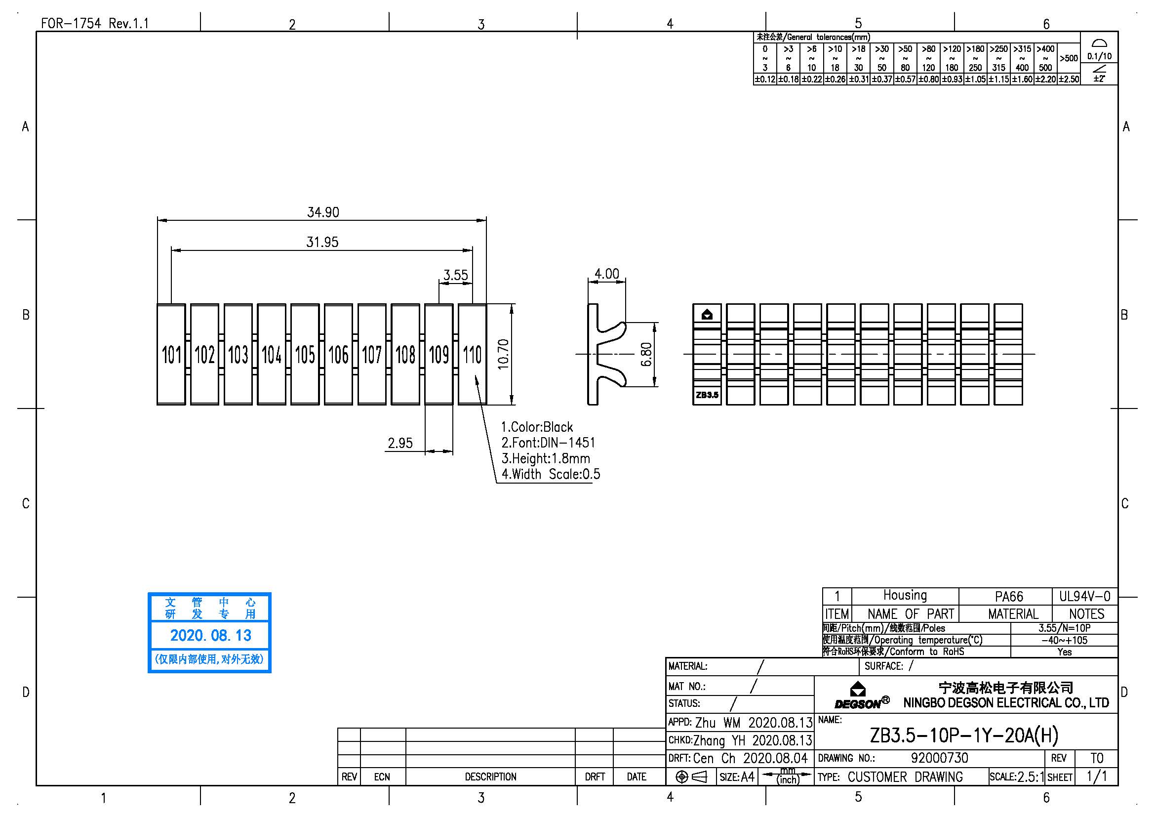 ZB3.5-10P-19-20Z(H), Маркировка, цифры гориз. 101-110...