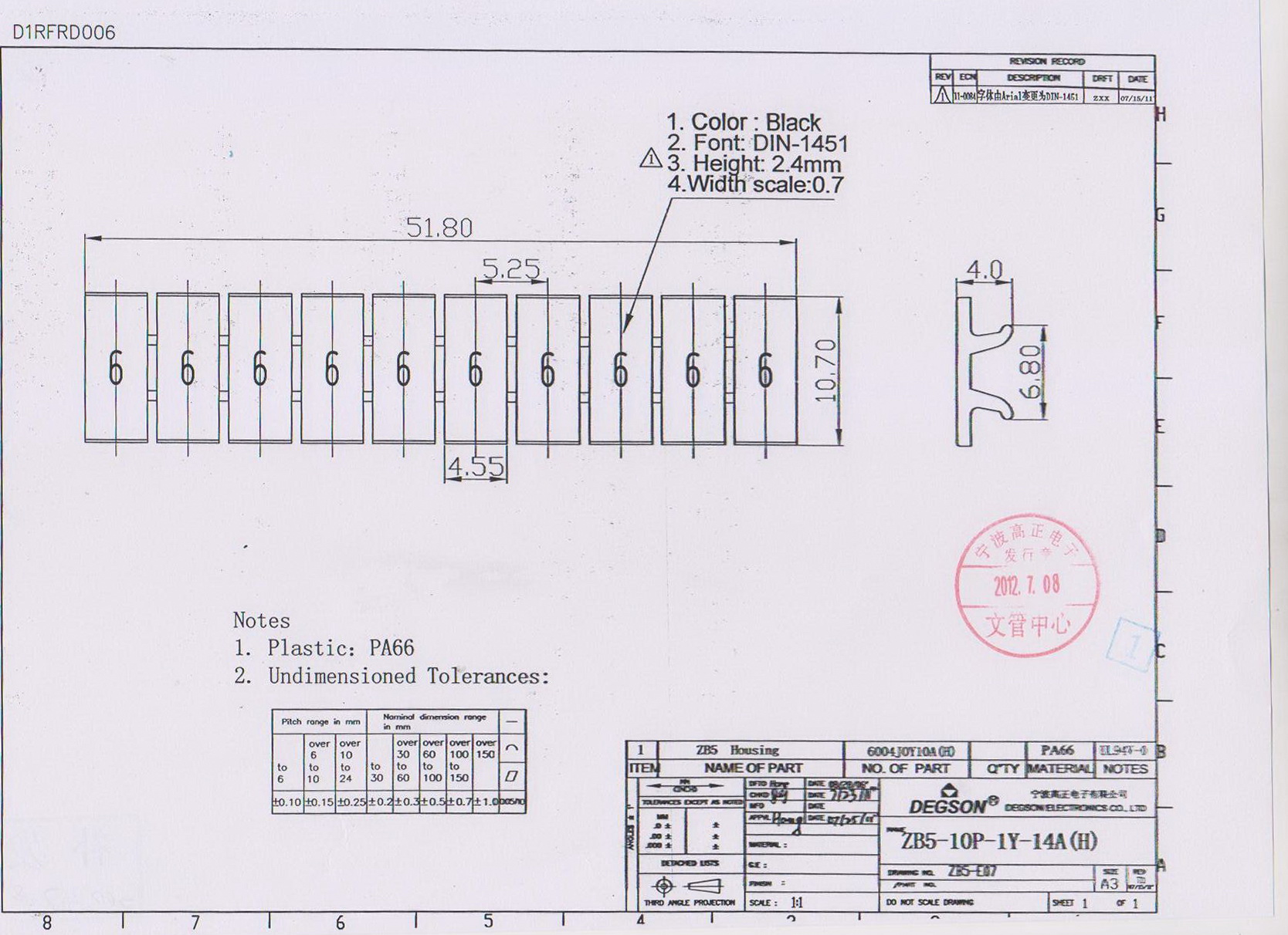 ZB5-10P-19-14Z(H), Маркировка, белая, гориз. цифра 6,...