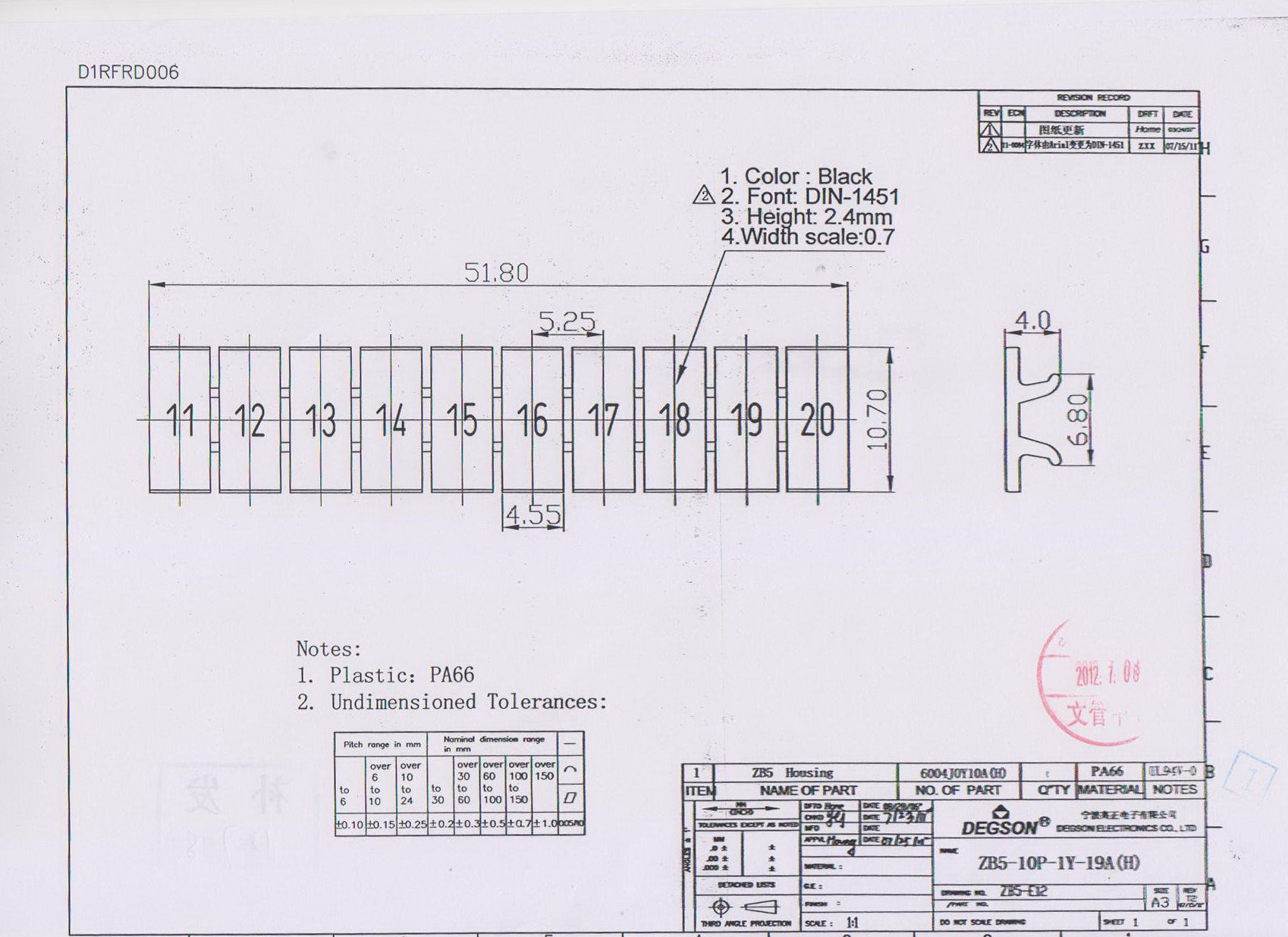 ZB5-10P-19-19Z(H), Маркировка, цифры гориз. 11-20,...