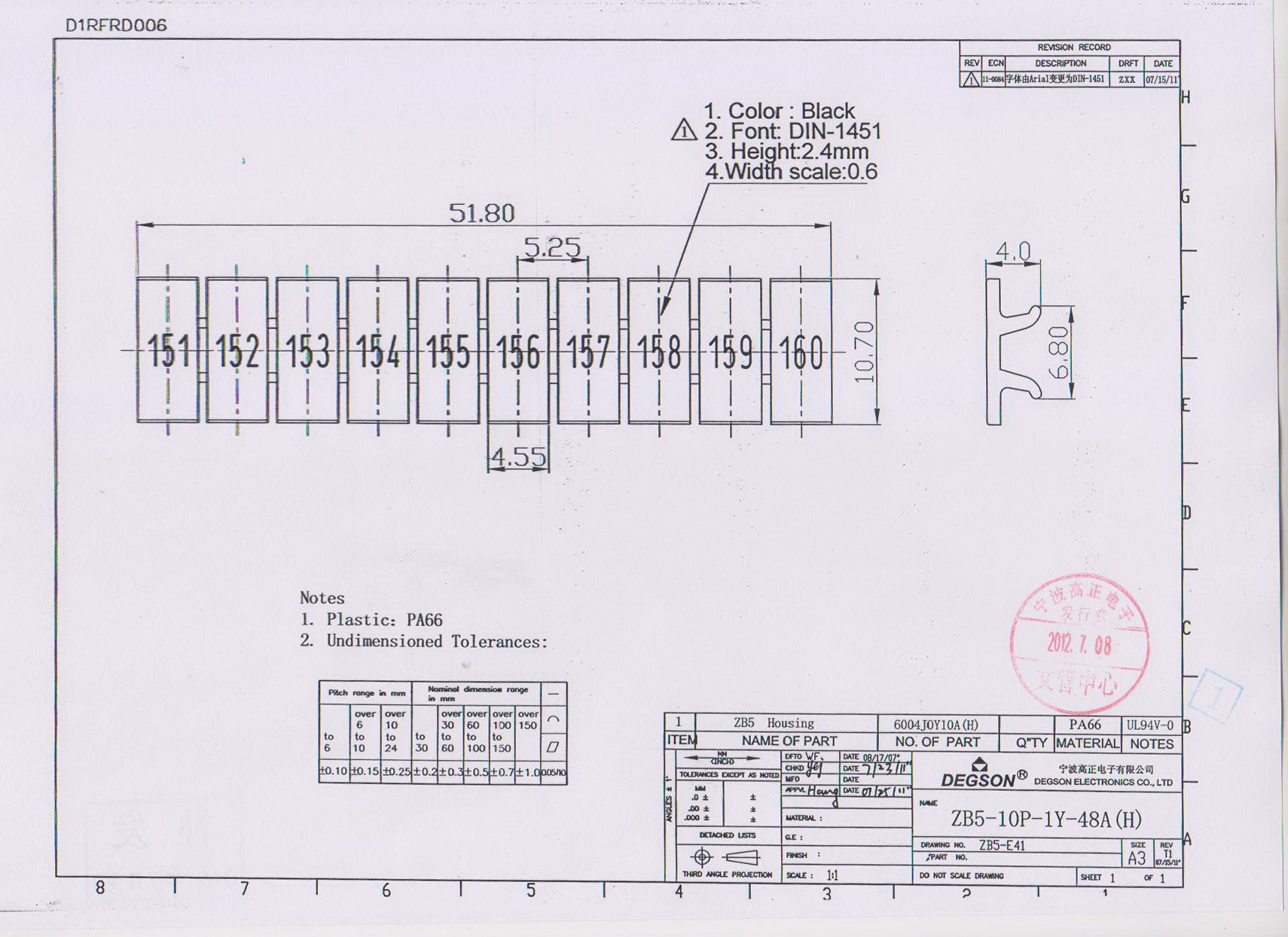 ZB5-10P-19-48Z(H), Маркировка, цифры гориз. 151-160,...
