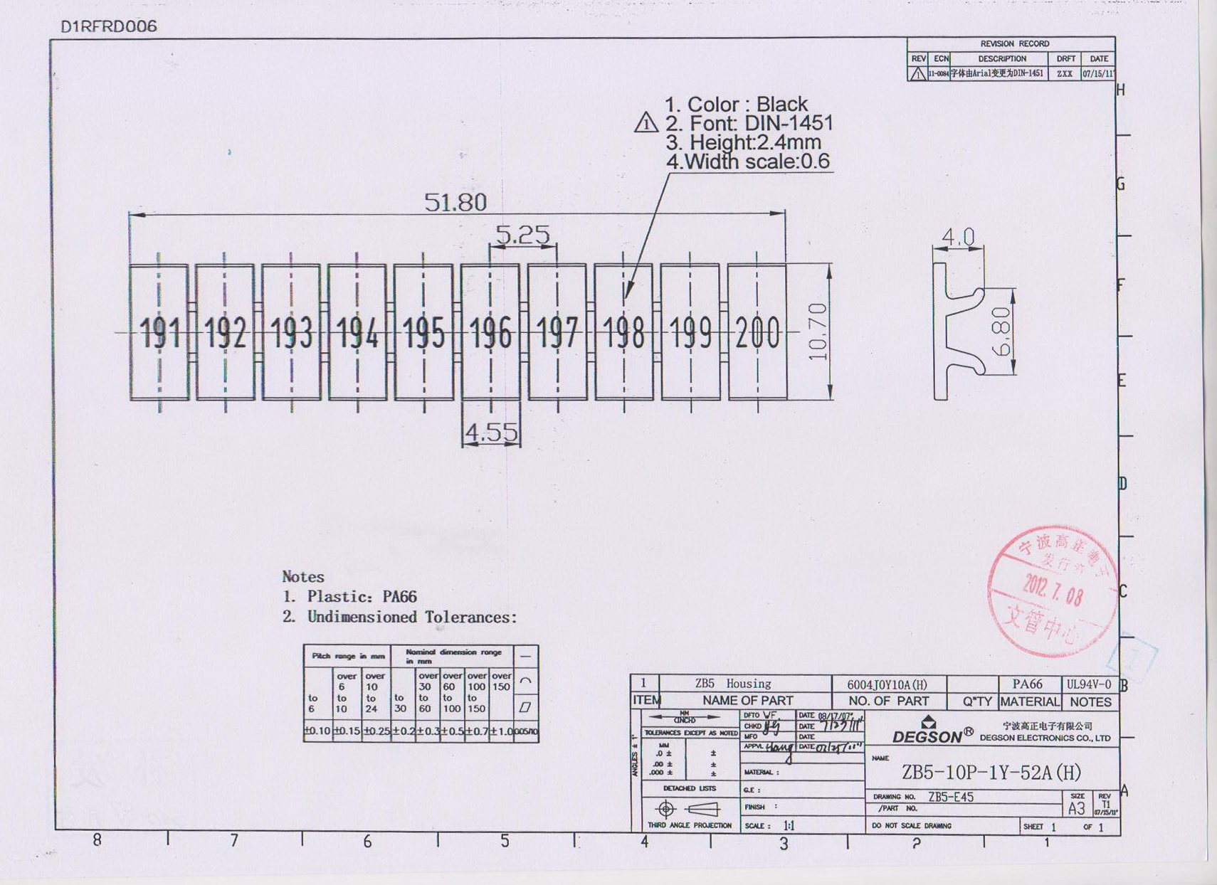 ZB5-10P-19-52Z(H), Маркировка, цифры гориз. 191-200,...