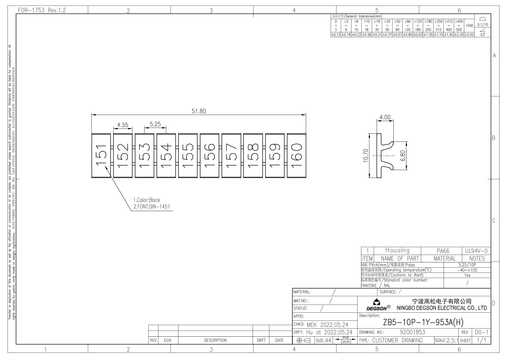 Маркировка, цифры вертик. 151-160, белая, 10 шт