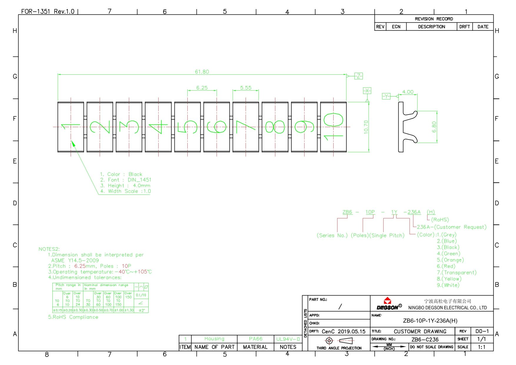 ZB6-10P-19-236Z(H), Маркировка, цифры вертик. 1-10,...