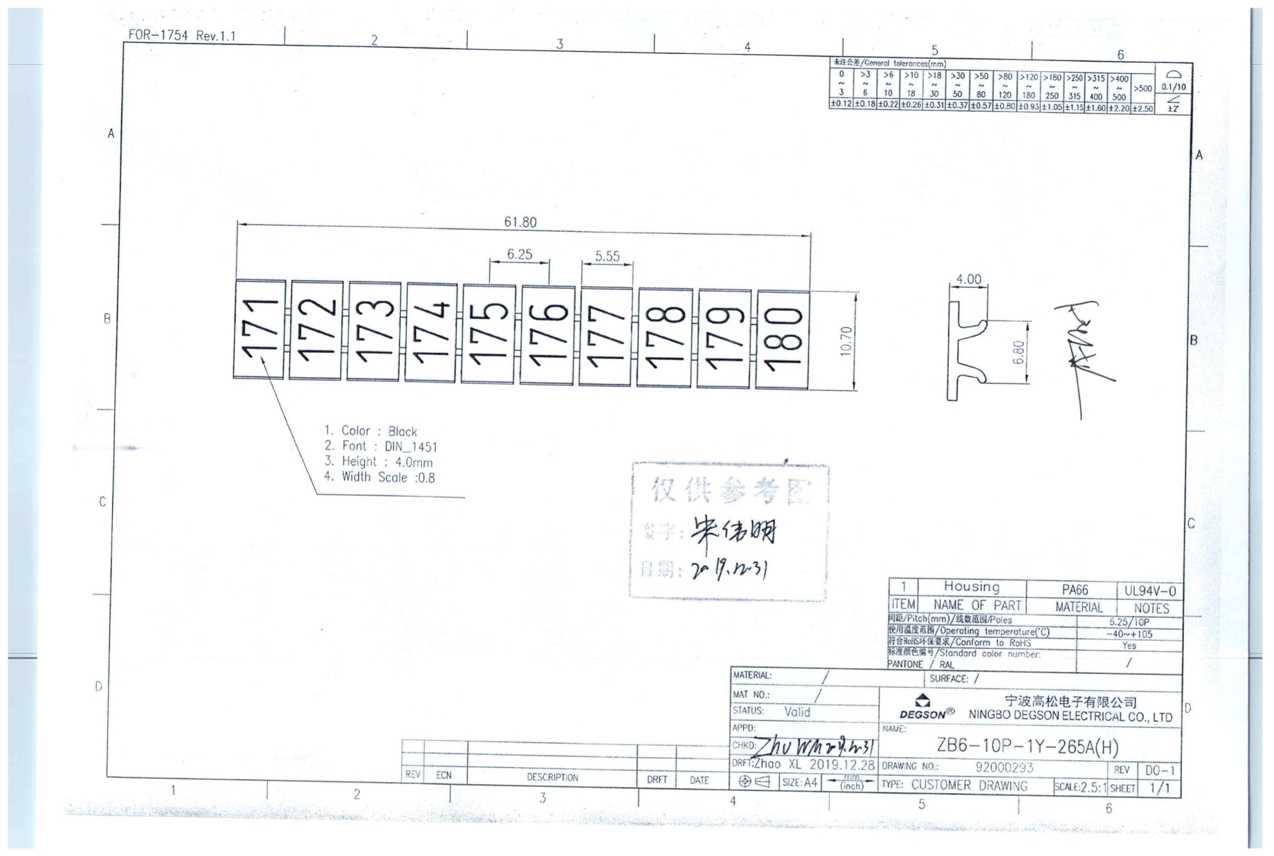 ZB6-10P-19-265Z(H), Маркировка, цифры вертик....