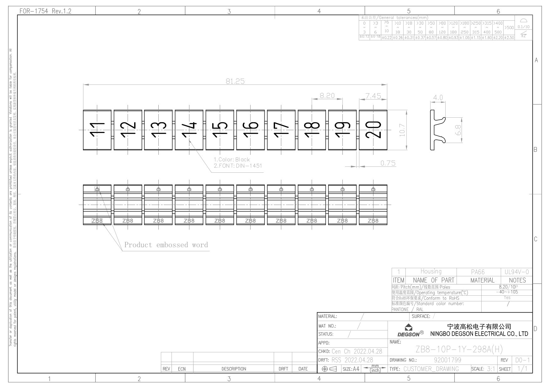 ZB8-10P-19-298Z(H), Маркировка, цифры вертик. 11-20,...