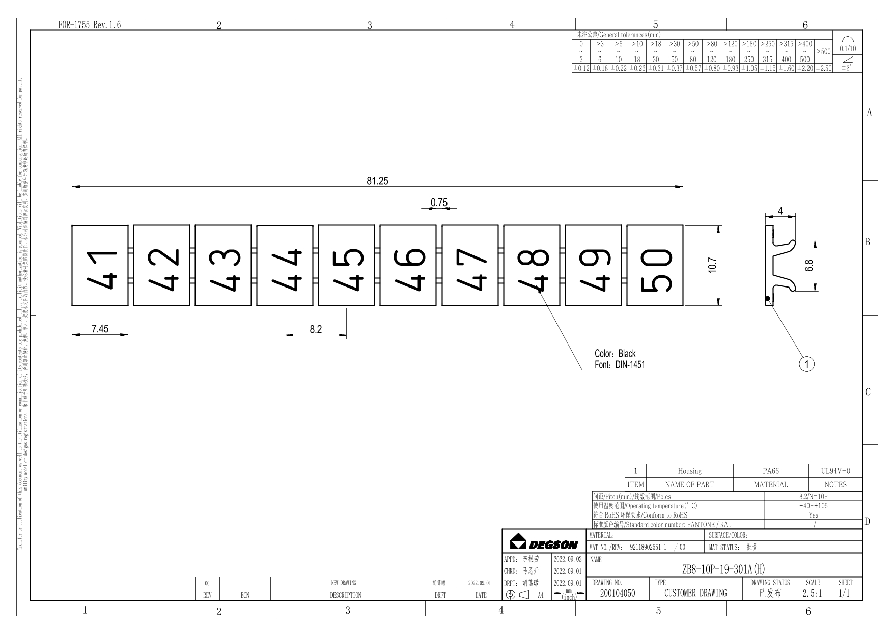 ZB8-10P-19-301Z(H), Маркировка, цифры вертик. 41-50,...