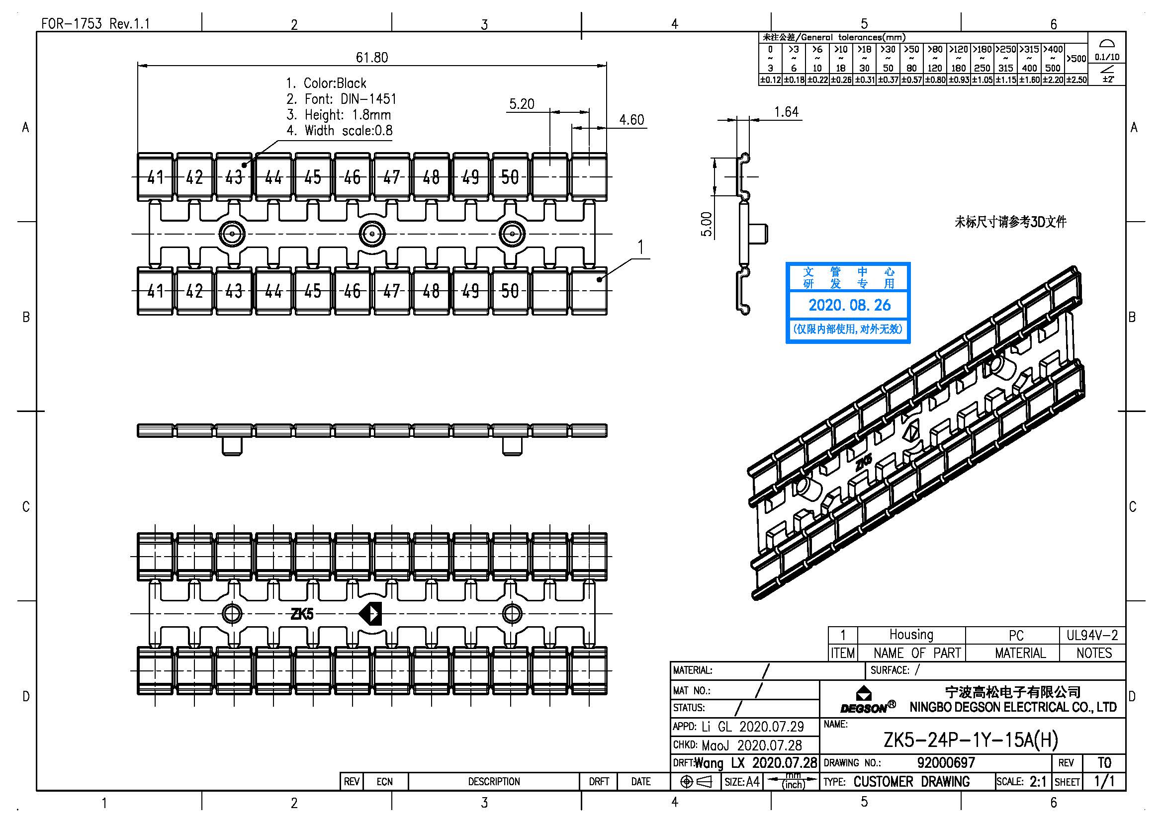 ZK5-24P-19-13Z(H), Маркировка, цифры гориз. 21-30,...
