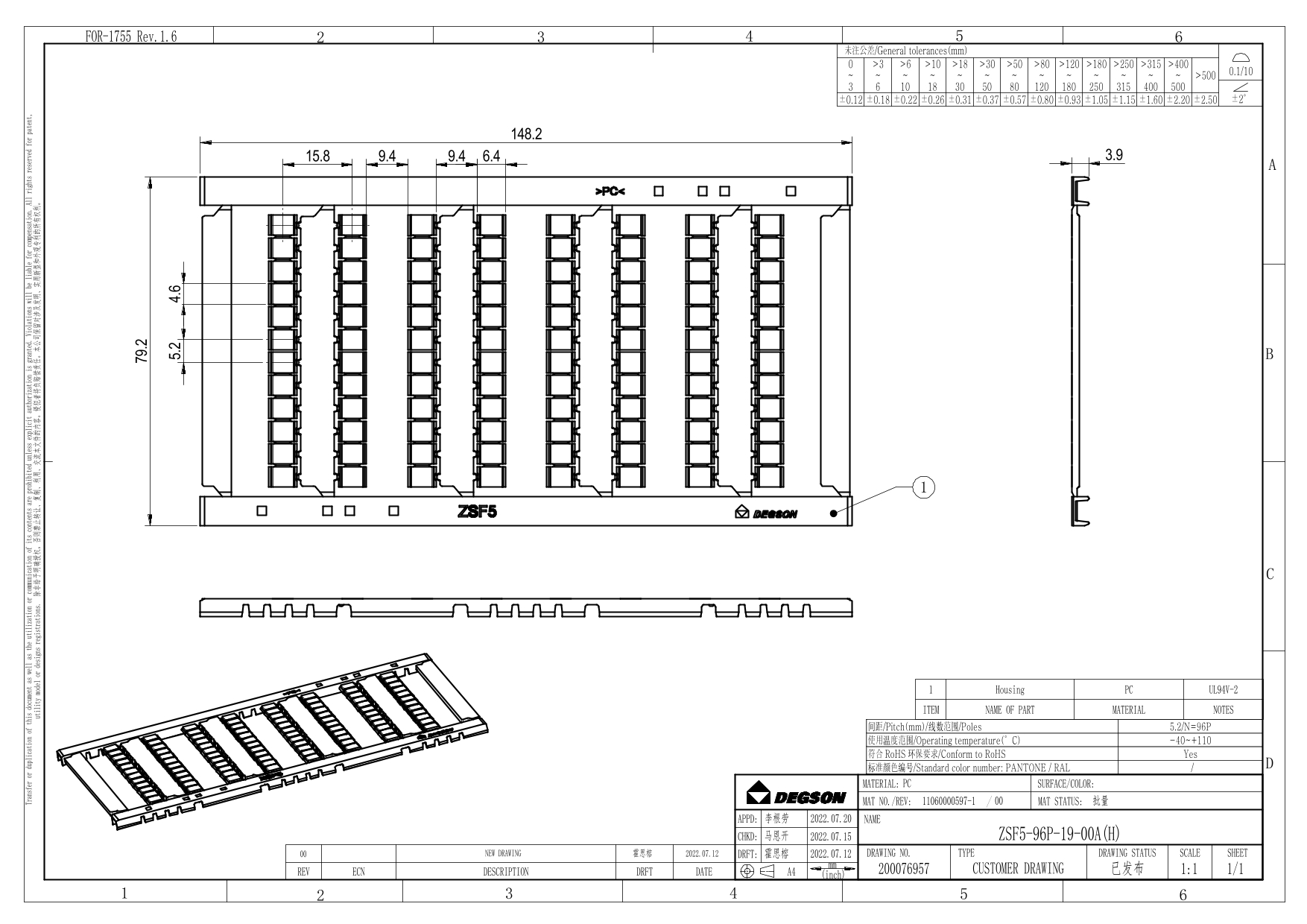 ZSF5-96P-19-00Z(H), Маркировка для клемм на...